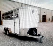 ♦ 8 Bolt 16" Wheels ♦ 6K Axles ♦ Double Cam Bar Barn Door ♦ Aluminum Wheels ♦ Walk-On Roof ♦ Front Ladder & Platform ♦ 5 Ladder Racks ♦ 3/4" Walls & Floor ♦ Flush Lock & Cam Bar ♦ Two Wall Switches ♦ Drop Leg, Set Back Jack ♦ 60" Triple Tube Tongue ♦ Semi-Screwless Aluminum ♦ Dome Lights ♦