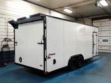♦ Rear Spoiler w/ Load Lights ♦ 3/4" WALLS ♦ Extra Dome Lights ♦ Walk-On Roof w/ Front Ladder ♦ 5 Ladder Racks ♦ Semi-Screwless .080 PolyCor Siding ♦ 12' of Recessed E-Track Welded Into Wall ♦ 60" Triple Tube Tongue w/ Adjustable Coupler ♦ Porch Light ♦ 16" O/C, 3/4" Floor & Walls ♦ Recessed 5K D-Rings ♦