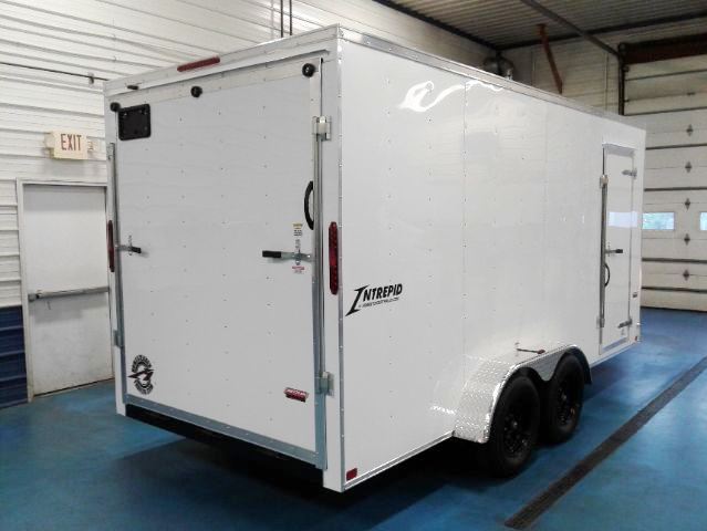 Four Recessed 5K D-RingsRoof Vent ♦ 16" O/C, 3/8" Walls & 3/4" Floor ♦ Roof Vent ♦ LED Lights ♦ Diamond Plate Fenders ♦ Black Wheels ♦
